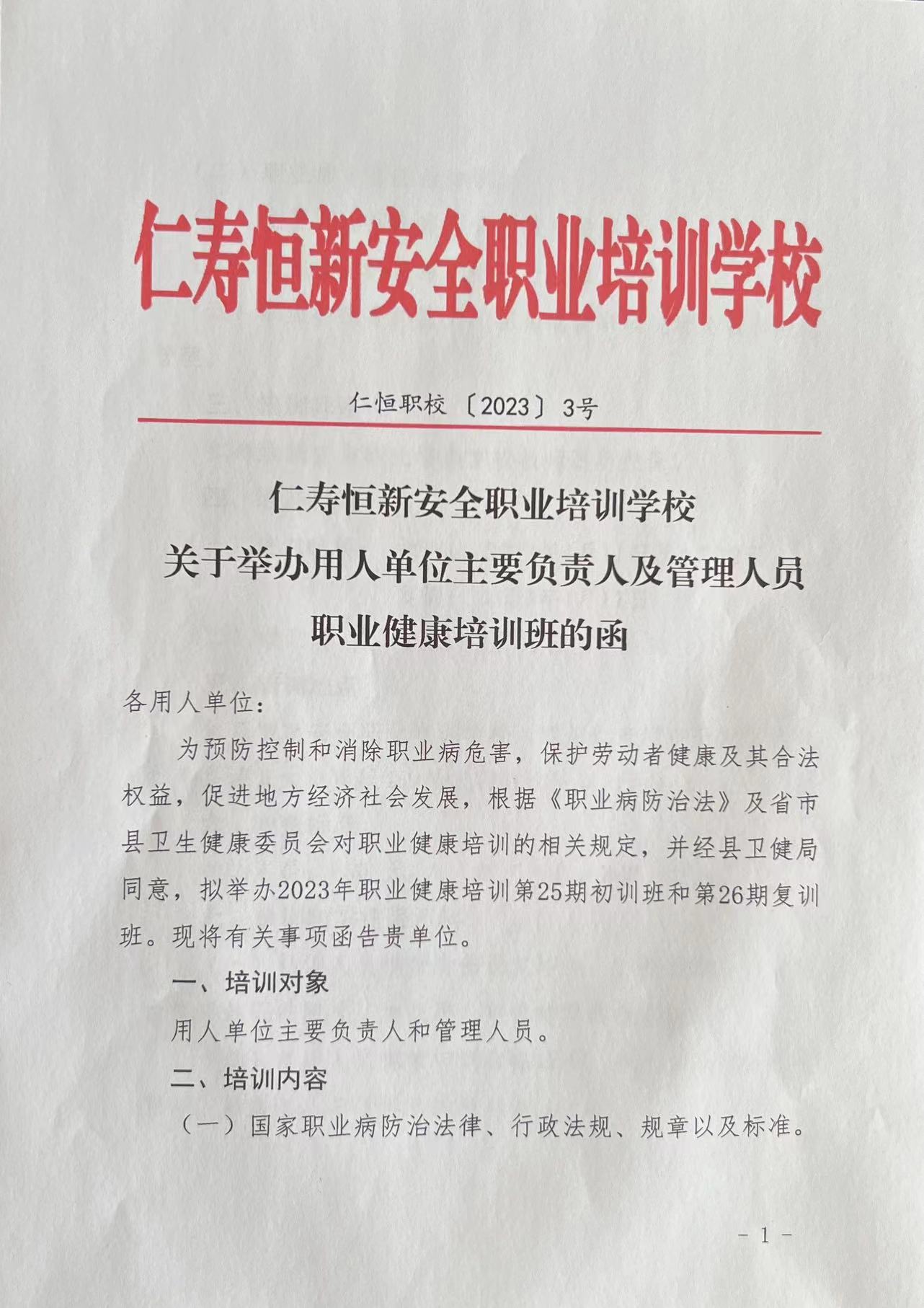 2023年职业健康培训第25-26期