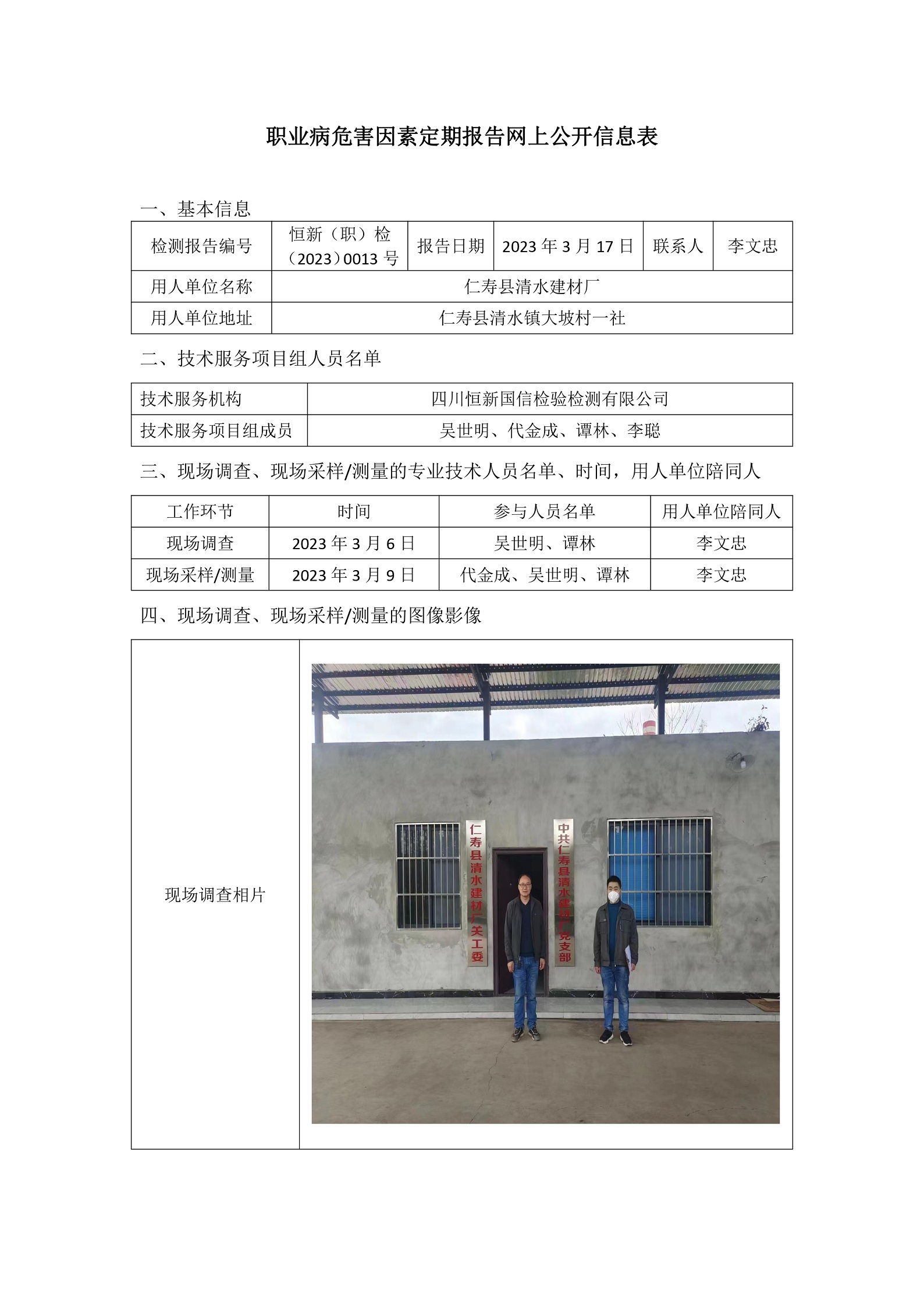 恒新(职)检(2023)0013号仁寿县清水建材厂