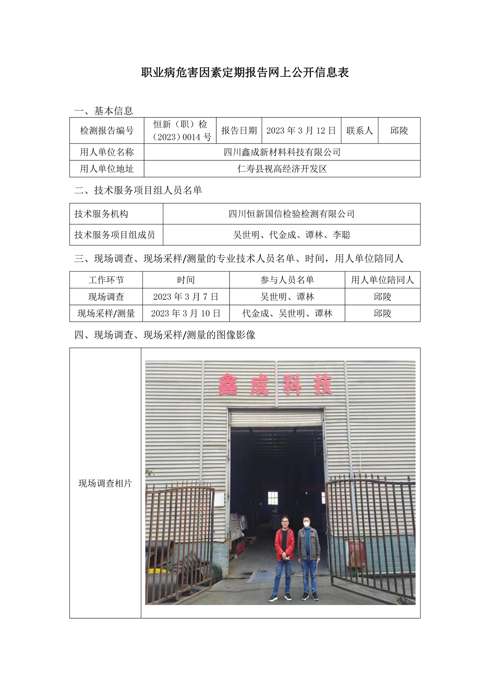 恒新(职)检(2023)0014号四川鑫成新材料科技有限公司
